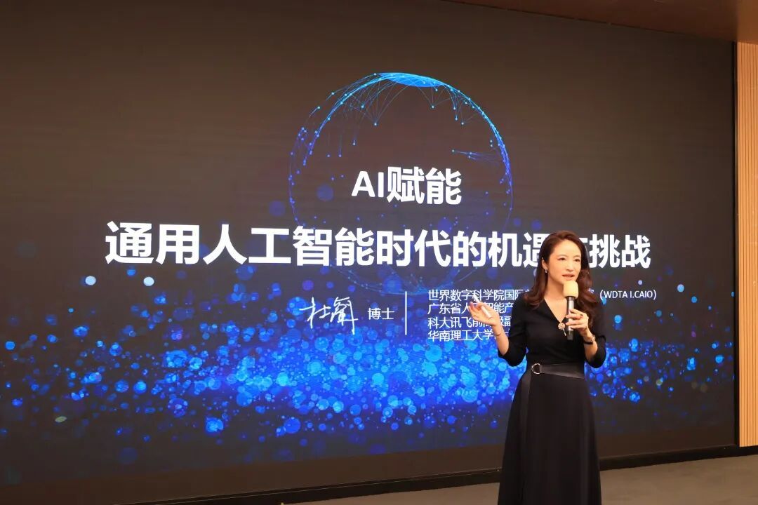 随后,杜兰教授以“AI赋能:通用人工智能时代的机遇与挑战”为题进行分享。她以智能产品为例,指出人工智能“AI一天,人间一年”的飞速发展态势,强调传媒学子应积极把握多模态技术,塑造差异化竞争力。她进一步展示了“AI+硬件”融合案例,并呼吁在后AI时代的教育中注重培养青少年独特优势与多元思维,以应对技术浪潮的挑战。